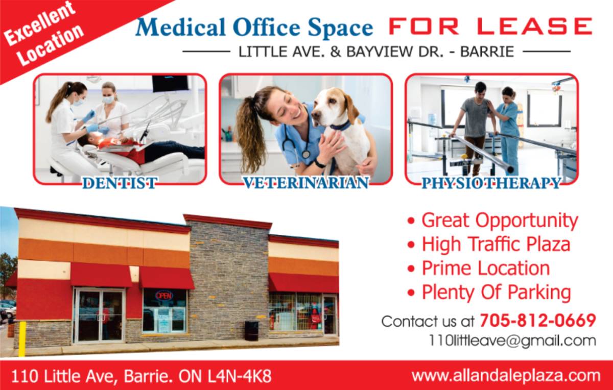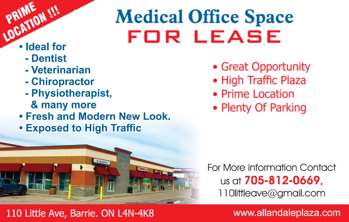 Fresh and Modern New Look. Exposed to High Traffic. Ample parking. Fantastic Community Positioning. Allandale Mall is Ideal for Medical offices, Pharmacy, Dentist, Chiropractor, Physiotherapist, Veterinarian and for many business. For Leasing Inquiries Please Contact.